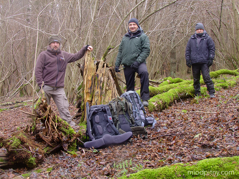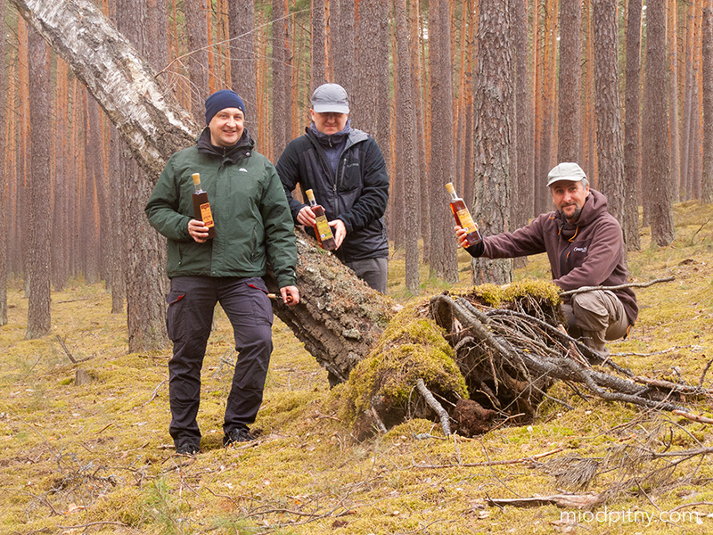 Jako, że miody te kosztoaliśmy już pod koniec kwietnia - zorganizowaliśmy "pochód miodowy", racząc się miodami podczas wędrówki przez Puszczę Solską. Jak widać miód krzepi i trzech chłopa może taką brzozę spokojnie wyrwać z korzeniami i to zaledwie po opróżnieniu jednej flaszy ;) Tym razem mieliśmy 4 miody litewskie z wytwórni Šušvės midus. Dotarliśmy do miejsca zwanego Karczmiskiem, gdzie przed wojną w środku knieji funkcjonowała karczma przy trakcie i można przypuszczać, że miody też tam serwowano. Szczegóły naszych wrażeń smakowych możesz zobaczyć w dziale Ostatnio dodane ->
