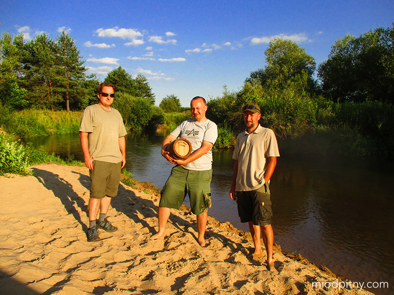 Wczoraj, tj. 26 lipca tradycyjnie odwiedziliśmy rzekę Tanew i tradycyjnie kosztowaliśmy po raz enty Wóczyca z pasieki Jaros. Miód na bazie gryczanego z sokiem wiśniowym (o ile nas jęzory nie mylą). Jest srogi i krzepki, a po schłodzeniu lodem znakomity na lato. Tym razem mieliśmy go w opakowaniu w postaci dębowej beczułki ze stalowym wkładem wewnętrznym. Przy okazji odwiedziliśmy znaną nam już pasiekę z miodami unikatowymi w Zawadce koło Łukowej (Pasieka Wędrowna Miodzio-Surmacz), gdzie udało się zdobyć nowośc - trójniak korzenny, który zapewne wychylimy i opiszemy podczas najbliższego spotkania ale o tym w poście następnym niebawem.